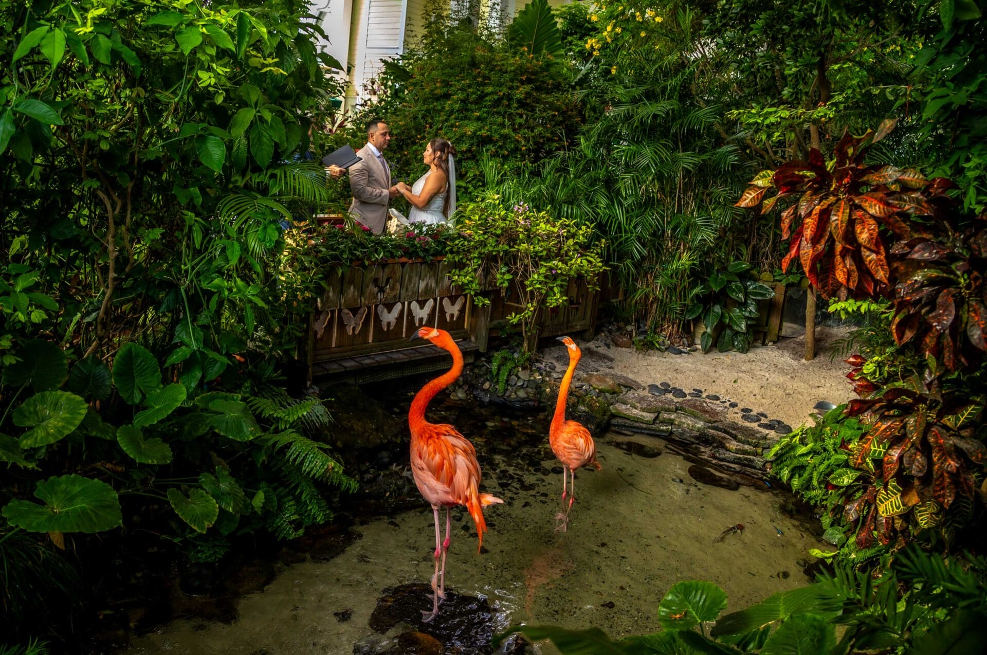 Key West offers breathtaking tropical gardens perfect for your wedding or vow renewal. Choose from venues like the Key West Garden Club, the historic Audubon House & Tropical Gardens, the intimate Key West Butterfly and Nature Conservatory, the charming Hemingway Home & Museum, or the Key West Tropical Forest & Botanical Garden, known for its beautiful natural setting. For something unique, Stock Island features a stunning botanical forest. Ready to plan your Key West garden wedding? Schedule your free consultation or call us today at 305-922-2222.